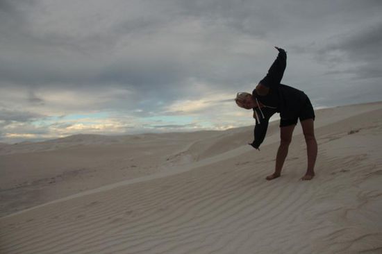 Auf ein paar großen Sanddünen, die aussehen, als wären wir in der Wüste, fühlen wir uns einen Moment wie Kinder.