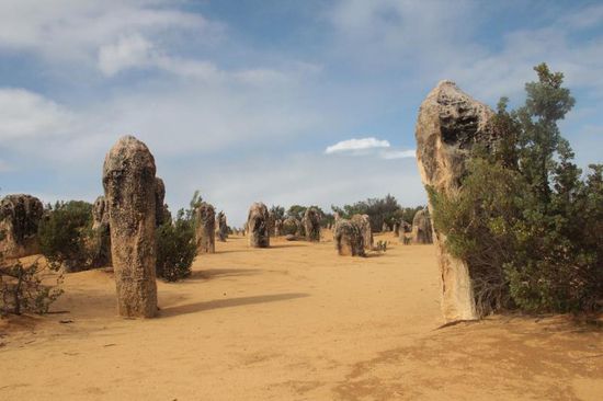1000e spektakuläre Kalksteinsäulen ragen aus dem Wüstenboden auf. Der kalkreiche, "goldene" Sand besteht aus Muschelschalen, die durch den Regen ausgewaschen, zusammen gepresst und abgetragen wurden.