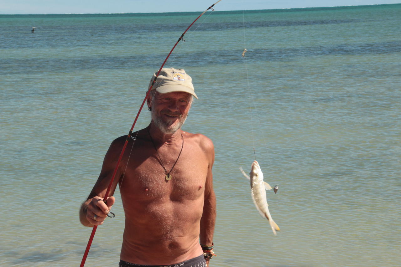 Während alle ein wenig herum schnorcheln und ich mich auf "Strandschatzsuche" begebe, versucht Walter mal wieder einen Fisch zu angeln. Doch auch heute fängt er keinen, schade!