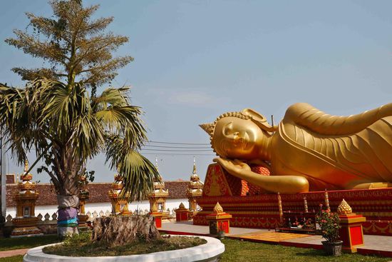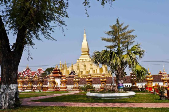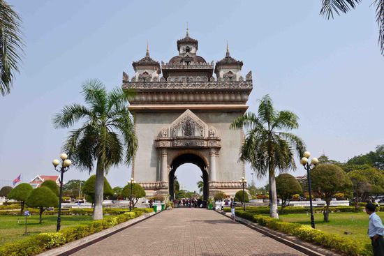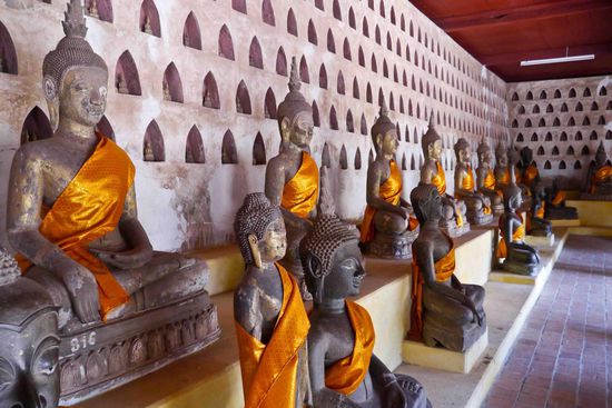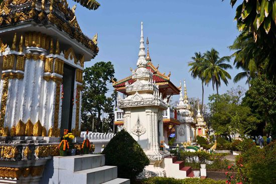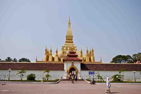 Von Luang Prabang gings mit dem Flugzeug weiter nach Vientiane. Vientiane ist seit 1975 die Hauptstadt der Demokratischen Volksrepublik Laos. Für eine Landeshauptstadt geht es sehr ruhig und gemächlich zu und her. Die Stadt liegt am Mekong, welcher auch hier die Grenze zu Thailand ist. Am Flussufer gibt es eine schöne Promenade mit einem abendlichen Markt. Es gibt keine Hochhäuser und wie überall in Laos viele Tempel und überall Mönche.
