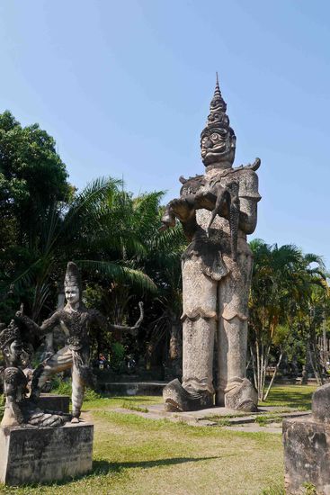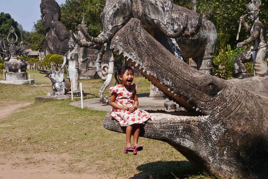 Einen Ausflug führte uns zum Buddha-Park südlich von der Stadt. Der Park zählt 200 Hindu und Buddha Statuen. Es ist eine wunderschöne Anlage am Rande des Mekong Flusses.