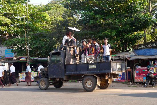 Von Yangon fuhren wir mit der Bahn nach Bago. Die Stadt liegt ca. 80KM nördlich von Yangon, jedoch benötigten wir mit dem Zug doch zwei Stunden für diese Strecke. Im Zug hatten wir Tickets in der Holzklasse und wiesen nun auch wieder woher dieser Begriff eigentlich stammt. Die Fahrt war ein wenig holprig, aber landschaftlich ganz schön. Es gab immer wieder was zu sehen.