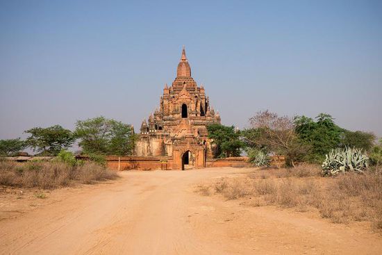 Bagan ist eine historische Königsstadt in Myanmar mit über zweitausend erhaltenen Sakralgebäuden aus Ziegelstein. Der von Tempeln bestandene Bereich erstreckt sich über ca. 36 km² in einer versteppten Landschaft und bildet eine der größten archäologischen Stätten Südostasiens. Bagan selbst war seit Jahren eines meiner Hauptziele auf dieser Welt. Und ich wurde nicht enttäuscht. Wir verbrachten vier Tag bei den Tempeln. Es ist unglaublich wie gross die Anlage ist. Ich war auch sehr überrascht wie gut erhalten die Tempel waren, bzw. dass der grosse Teil renoviert ist. Über die Qualität der Renovationen lässt sich sicherlich streiten. Die Renovationen haben vielfach nichts mehr mit dem ursprünglichen Bauwerk zu tun und deshalb ergeben sich oft Mischungen aus Antik und Neu.