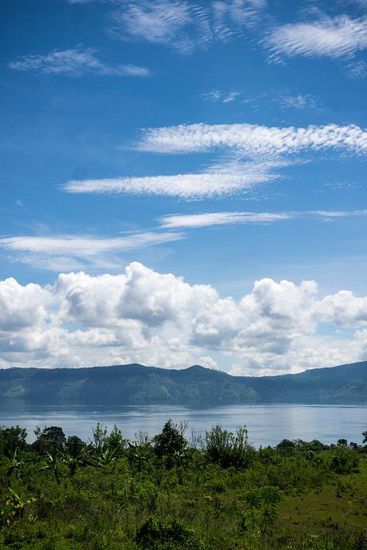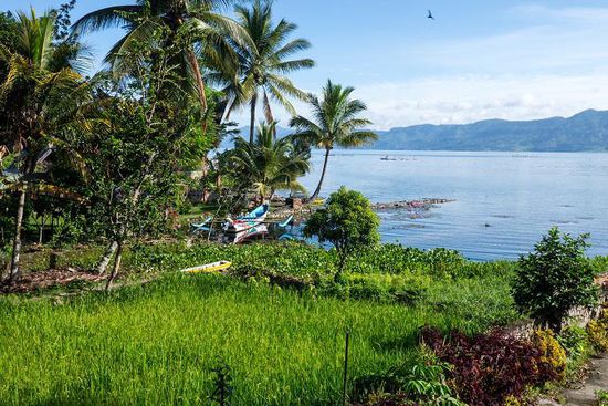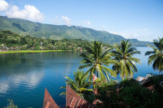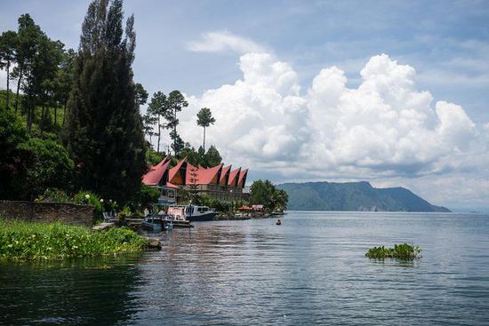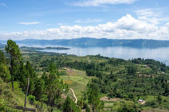 Der Tobasee liegt in einem vulkanisch-tektonischen Kesseleinbruch, 77 km südlich der Provinzhauptstadt Medan. Das Niveau des Sees liegt 905 Meter über dem Meeresspiegel, die Uferlänge beträgt 294 km. Mit einer Gesamtfläche von 1776,5 km² (zum Vergleich: Bodensee 536 km²) , einschließlich der 647 km² großen Halbinsel Samosir, ist er der größte Kratersee der Erde.