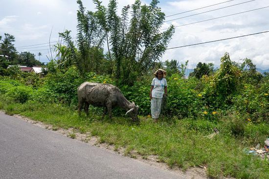 Die Halbinsel Samosir ist mit 647 km² etwa so groß wie die Inseln Ibiza oder Singapur. Wir umrundeten diese Insel an einem Tag. Ich muss ehrlich sagen, dass ich die Distanz ein wenig unterschaetzt habe. Fuer die Strecke benoetigten wir doch gute 6 Stunden. Die Strassenverhaeltnisse sind zum teil auch sehr schwierig und machen schnelles vorwaerts kommen unmoeglich.