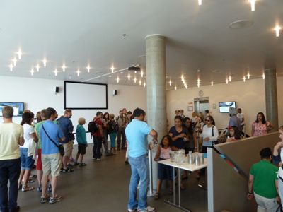 Warten auf den Fahrstuhl - wegen der langen Wartezeit wurde kostenlos Wasser verteilt