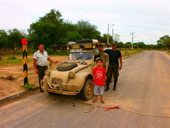 Jetzt aber ab nach Paraguay. An der Urwaldgrenzstation Infante Ribarola machen wir noch ein paar Bilder mit den Grenzbeamten sowie mit den Militaers auf paraguayischer Seite, wo die Hauptrolle wieder mal La Gordita gespielt hatte.