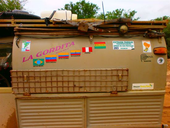 Du machst uns einfach platt, oder du hilfst uns da weg zu kommen. Er entschied sich Gott sei Dank fuer die zweite Version, und schleppt uns dann noch die letzten 4 km bis zum Asphalt, wo wir so gegen zwei Uhr morgens totmuede in unserer Gordita Zuflucht finden...
