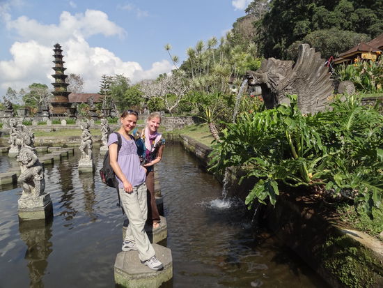 Kaum sind wir los gelaufen, wurden wir schon von einem Bemo Taxi aufgepickt und bis nach Tirta Ganga gebracht. Dort befindet sich ein Wassertempel, mitten in den Reisfeldern, den wir uns angeschaut haben. Richtig schön!