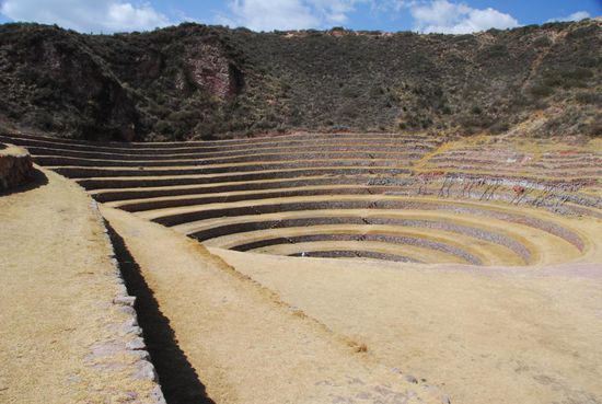 Moray - eigentlich nur ein Loch in der Erde oder ein kleines Tal. Was diesen Flecken so sehenswert macht, sind die Terrassen, die von den Inka als Versuchsfeld fuer ihren Ackerbau angelegt wurden. Sieht aus wie ein riesiges Amphietheater und auf den verschiedenen Ebenen sollen unterschiedliche klimatischn Bedingungen herrschen - ein ideales Experimentierfeld auf kleinstem Raum. Der Taxifahrer wartet mit meinem Fahrrad im Auto eine halbe Stunde - ich hasse es unter Zeitdruck zu stehen...