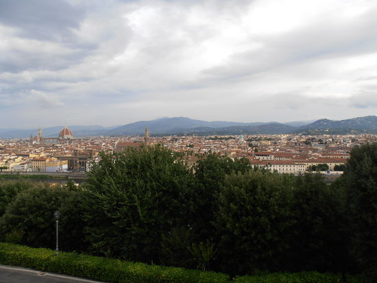 Ein Blick über Florenz, die große Kuppel ist die Santa Maria del Fiore, aufgenommen vom Pizza Leonardo da Vinci