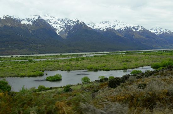 Queenstown liegt malerisch am See, umgeben von (noch) schneebedeckten Bergen und hat sich aufgrund seiner geografischen Lage als einer der größten Touristenorte Neuseelands etabliert. Hier kann man absolut alles machen: Bungee-Jumping, Mountainbiken, Wandern, Klettern, Rafting, Canyoning, im Winter Skifahren und Snowboarden, sich auf einem Brett Flüsse runterstürzen und vieles mehr. Außerdem gibt es noch eine Gondel, die auf einen Hügel hinauffährt von wo aus man einen tollen Blick über Queenstown und die Umgebung hat. Allerdings kriegt man auch in Queenstown nichts geschenkt, und so habe ich bspw. auf die Gondelfahrt verzichtet und bin stattdessen auf einen anderen Hügel hinaufgefahren (ohne Gondel, sondern mit dem Auto ). Außerdem wurden hier große Teile der drei "Herr der Ringe"-Filme gedreht und auch Teile von "Der Hobbit" (der Anfang Dezember in Neuseeland anläuft und für den seit Wochen so viel Werbung gemacht hat, dass ich mir kaum vorstellen kann, dass der Film Gewinn machen wird) und es gibt einen Canyon. Den Canyon durfte ich laut Mietvertrag nicht mit meinem Auto befahren, aber dafür sind wir auf dem Weg zum Rafting durchgefahren und ich konnte verstehen, wieso dort keine Mietwagen erlaubt sind: Die Straße ist zwar zweispurig befahrbar, aber es passt nur ein Auto hin und auf der einen Seiten erheben sich die Felsen, auf der anderen Seite geht es geschätzte 40 Meter in die Tiefe. Und zudem ist es noch eine unbefestigte Straße. Da war ich dann doch sehr froh, beruhigt die Aussicht aus dem Fenster genießen können und nicht auf die Straße achten zu müssen. Da es die letzten Tage relativ viel geregnet hatte, war die Strömung im Fluss relativ stark und somit hat das Rafting viel Spaß gemacht, auch wenn es nach meinem Empfinden etwas viele ruhige Passagen gab. Von vier Booten sind zwei gekentert, aber wir sind zum Glück alle im Boot geblieben und mussten deshalb die anderen und ihre Paddel aus dem Wasser ziehen. Während ich Rafting bereits zuvor ein paar Mal gemacht hatte, war Canyoning eine komplett neue Erfahrung für mich und es war eines der besten Sachen, die ich bisher gemacht habe. Zunächst sind wir etwa eine halbe Stunde auf einer der bekanntesten Wanderstrecken der Südinsel, dem Routeburn Track, gewandert und dort schließlich nach einem Safety Briefing ins Wasser. Wir hatten Neoprenanzug, atmungsaktives T-Shirt, Neoprenjacke, -socken, -schuhe und eine -mütze sowie Helm gestellt bekommen und dadurch war mir bis fast zum Schluß warm - das Wasser hatte nämlich nur drei Grad (!!!), da es Schmelzwasser war. An einer Stelle bin ich sogar einen acht Meter hohen Wasserfall hinuntergesprungen - das hat allerdings einiges an Überwindung gekostet. Abends nach dem Canyoning bin ich dann weiter nach Süden gefahren, nach Te Anau, dem Tor zur Fjordlandschaft.