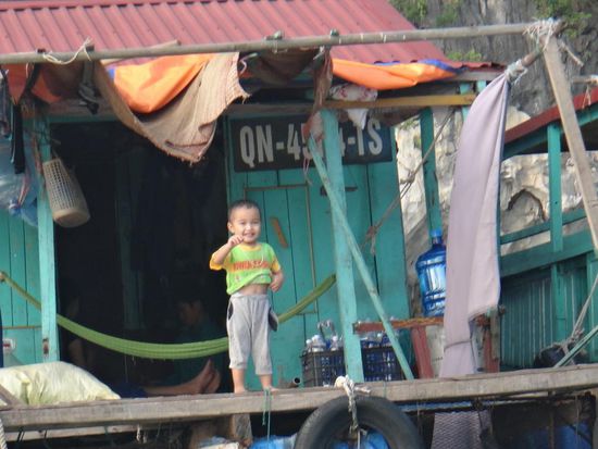 Am nächsten Morgen ging es dann um 8 Uhr los Richtung Halong Stadt. Von dort sind wir mit einem Tender auf unser Boot Cristina Deluxe gebracht worden. Während dem Mittagessen haben wir bereits die ersten Karstberge bestaunen können - die Halong Bucht ist UNESCO Weltnaturerbe und zählt zudem zu den sieben neuen Weltnaturwundern.