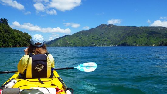 Von Picton aus legt die Fähre zur Nordinsel ab. Das ist aber nicht der einzige Grund, um nach Picton zu kommen - direkt neben der Stadt beginnen die Marlborough Sounds, eine Fjordlandschaft. Man kann den Queen Charlotte Drive entlang fahren, um einen ersten Eindruck von den Fjorden zu bekommen. Die Straße ist sehr kurvig und eng und zumeist kann man nicht schneller als 40 km/h fahren. Zwischendurch gibt es immer wieder Aussichtspunkte und ein paar Parkplätze, von denen aus man Spaziergänge machen kann. Um die Fjorde noch besser kennenzulernen, habe ich mir gemeinsam mit einem anderen Alleinreisenden, den ich auf dem Campingplatz in Blenheim kennengelernt hatte, ein Kajak gemietet. Vom Wasser aus hat man einen ganz anderen Blick als von Land - die Landschaft war mindestens genauso wunderschön. Außerdem hatten wir das große Glück, mehreren Delfinschulen zu begegnen - insgesamt haben wir über 20 Delfine gesehen. Da wir mit dem Kajak und nicht mit dem Motorboot unterwegs waren, kamen sie sogar wirklich nah heran. Für mich eines der Neuseeland-Highlights!