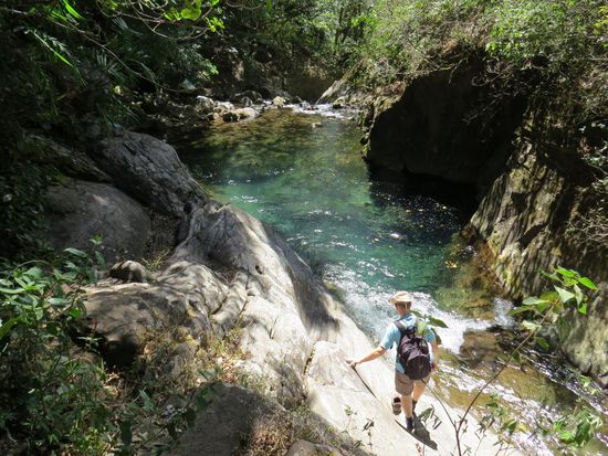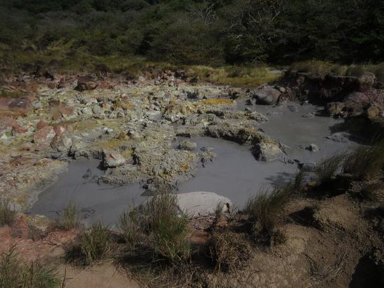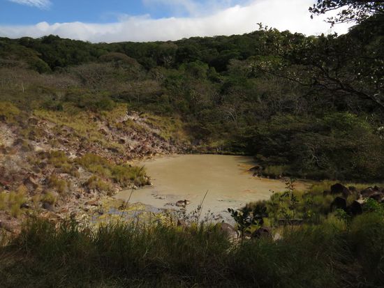 Kaum angekommen, wurde mir vom freundlichen Mitarbeiter des Hostels "Casa de Lis" erklärt, dass der Vulkan seit Jahren nicht mehr begehbar ist. Ich wusste zwar, dass Pascal und Lisa erst wenige Tage vorher dort gewesen waren, aber da kein Bus hinfuhr, musste ich wohl oder übel auf den Vulkan verzichten. Stattdessen wollte ich gerne Reiten gehen, aber das kam aufgrund von zu wenigen Teilnehmern (ich war die Einzige) nicht zustande. Raften wollte ich nicht, blieb also noch Kajak fahren. Das hätte mich zwar sehr interessiert, aber 120 USD erschienen mir dann doch zu viel für drei Stunden. Nach einem Rundgang durch die Stadt, die nicht wirklich viel anderes zu bieten hat, entschied ich mich dazu, bereits am nächsten Tag weiterzureisen. Es war insofern schade, da mir das Hostel unglaublich gut gefallen hat. Es war das beste, in dem ich in Costa Rica war - große Zimmer mit viel Platz, saubere und geräumige Duschen, Warmwasser, bequeme Betten, eine super ausgerüstete Küche und sehr nettes und hilfsbereites Personal. Von Turrialba ging es weiter nach Alajuela, eine Stadt in der Nähe von San José. Die Stadt selber hat mir deutlich besser gefallen als San José und von hier aus kann man ebenfalls einen Vulkan besichtigen. Laut meinem Reiseführer und Berichten anderer Touristen sollte man vor 10 Uhr morgens oben sein, da danach Wolken den Krater verdecken. Allerdings fährt der Bus erst um 9.15 Uhr in Alajuela los und braucht 45 Minuten zum Vulkan. Eine Tour kostet wiederum 100 USD, da man auf dem Rückweg noch eine Kaffeeplantage besucht und Mittagessen gestellt bekommt. Nachdem ich mit anderen in meinem Zimmer gesprochen habe, die mit dem öffentlichen Bus hochgefahren sind und nur noch Wolken gesehen haben, habe ich mich gegen eine Fahrt zum Vulkan entschieden. Im Nachhinein hat sich das leider als falsche Entscheidung herausgestellt, da an dem Tag sehr gute Sicht war. Ich hab mich damit getröstet, dass ich auf der weiteren Reise noch einige Vulkane zu sehen bekomme. Anstatt auf den Vulkan zu fahren habe ich den Tag damit verbracht, mir die Stadt anzuschauen und meine Reise in Chile zu planen. Am kommenden Morgen ging es von Alajuela über San José nach Liberia, wo ich abends mit Lisa und Pascal verabredet war. Von Liberia aus kann man den Nationalpark Rincon de la vieja besuchen, der einen Vulkan beheimatet. Folglich sind wir am nächsten Tag auf eine weitere Wanderung gestartet. Es gibt verschiedene Wege unterschiedlicher Länge und wir entschieden uns für einen Rundweg, der an einem Mini-Vulkan und mehreren Schlamm-Pools und einem kleinen Wasserfall vorbeiführt. Anschließend sind wir noch zu einem Bach gegangen, in dem man baden konnte. Da das Wasser aber echt kalt war, haben Lisa und ich uns dagegen entschieden. Den Nachmittag haben wir am Pool von Lisa und Pascals Hotel verbracht.