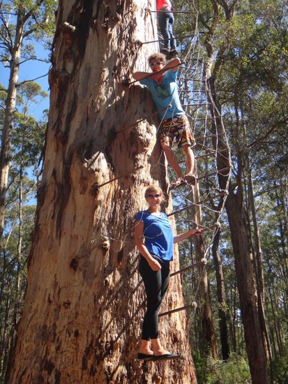 Nach fast fünf Jahren bin ich nun wieder in Australien. Meine Freunde Lukas und Lena, die ich letztes Mal in Australien kennengelernt hatte, haben mich vom Flughafen abgeholt und zu meinem Hostel gebracht. Dort wurde mir schmerzhaft bewusst, dass ich nicht mehr in Vietnam bin: Ein 10-Bett-Zimmer hat pro Nacht ca. 23 Euro gekostet. Zum Glück konnte ich nach wenigen Tagen in den Van der beiden "einziehen", so dass sich die Übernachtungskosten im Rahmen hielten. Am nächsten Tag bin ich mit Lukas zum Strand gefahren, da Lena arbeiten musste und die beiden einen Campervan haben. Perth ist die isolierteste Großstadt der Welt - es liegt näher an Asien als an Sydney. Mir gefällt die Stadt gut, da sie tolle Strände und viele Grünflächen bietet und gleichzeitig nicht so viele Hochhäuser hat wie Melbourne oder Sydney. Die nächsten Tage habe ich mit Lukas und Lena verbracht. Wir waren des Öfteren am Strand und haben Kings Park und die Innenstadt angeschaut. Es hat sich nicht wirklich viel verändert seit ich das letzte Mal hier war. Meistens musste entweder Lukas oder Lena arbeiten, so dass wir selten zu dritt unterwegs waren. Bei einer dieser raren Gelegenheiten sind wir mit ihrem Van in den Südwesten von Australien, nach Pemberton, gefahren. Dort gibt es riesige Bäume, auf die man hochklettern kann. Klettern ist das richtige Wort, denn die Stufen sind nicht besonders breit und man sollte auf jeden Fall schwindelfrei sein, denn die drei Bäume, auf die man hochgehen kann, sind allesamt zwischen 52 und 75 Meter hoch. So ganz wohl haben wir uns beim Hinaufklettern nicht gefühlt (Lukas und ich sind beide nicht komplett schwindelfrei), doch oben angekommen hat die Aussicht für alles entschädigt. Die Nacht haben wir in Margret River verbracht, bekannt für seine vielen Weingüter. Aus diesem Grund haben wir selber eine kleine Weinprobe gemacht, d.h. jeder hat sich einen anderen Wein bestellt und wir haben getauscht. Eigentlich wollten wir eine richtige Weinprobe machen, aber die Weingüter haben alle um 17 Uhr geschlossen und wir sind erst später in Margret River angekommen.