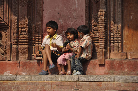Von einem Fenster herab grüßen uns Shiva und Parvati. Ausgiebig lassen wir die Eindrücke von Königspalast, Hanuman Dhoka, der Statue des schwarzen Bhairab und der unzähligen Tempel auf uns wirken. Das Mittagessen wird in einem Rooftop Restaurant eingenommen. Zurück geht es wieder mit der Rikscha. Unser alter Rikschafahrer keucht ganz schön, schließlich geht es über holprigen, mit Schlaglöchern übersäten Belag und auch noch bergauf. Zeitweise glauben wir schon, er könnte an einem Herzinfarkt sterben. Unser Angebot, bei steileren Stücken abzusteigen, lehnt er ab. Dafür freut er sich umso mehr, als er beim Hotel ein fettes Trinkgeld bekommt. Der Grinser will gar nicht mehr aus seinem Gesicht verschwinden.