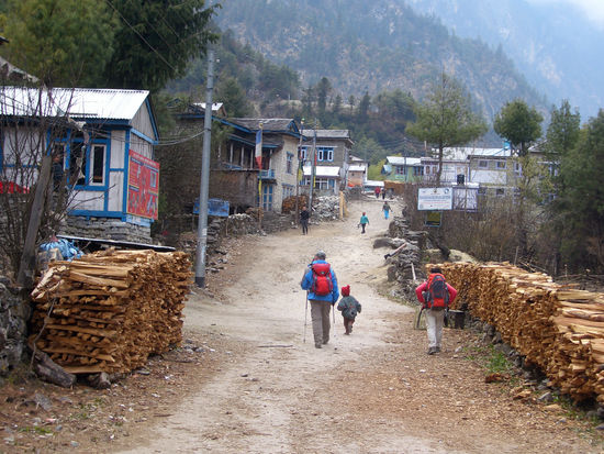 Hier treffen wir auf 2 Schweizerinnen, die ihre Männer zu Hause gelassen haben, um die Annapurnarunde zu gehen. Der Frauenanteil auf der Annapurnarunde ist überhaupt relativ hoch. Leider hat eine der Schweizerinnen auch der Durchfall erwischt und sie kann seit Tagen kaum etwas essen. Sie sind daher auf dem Rückweg. Hoffentlich trifft mich nicht das selbe Los.