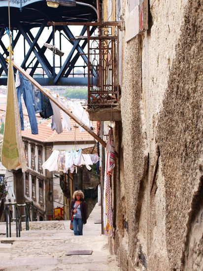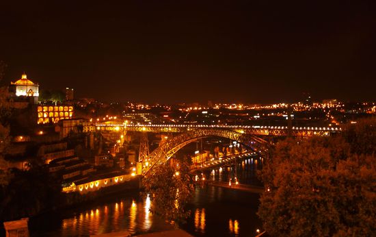 Gehen Richtung Zentrum...was uns dort erwartet, ich bin einfach überwältigt...Porto bei Nacht...so eine Vielfältigkeit...ein Treiben..unglaublich...kann nur sehen und staunen..beleuchtete Brücken...oben für Fussgänger und Bahn, unten für Autos...Gondeln und Fahrstühle die den Felsen rauf und runter fahren...Livemusik von den kleinen Lokalen...wir befinden uns in dem Viertel wo die Ärmsten leben und doch hat diese Gegend einen ganz besonderen Charme, aber das könnt ihr auf den Fotos sehen...ich bin sprachlos, noch vor einer Stunde, dachte ich, was für eine furchtbare Stadt...
