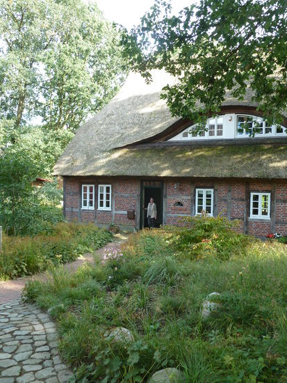 Alles ist gepackt in Ulrikes Auto und dann bricht die Batterie zusammen. Das heißt umpacken in meinen Wagen, aber nach recht unproblematischer Fahrt über etwa 500 km erreichen wir gegen Mittag unser Ziel - ein reedgedecktes Ferienhaus am Nordrand der Lüneburger Heide.