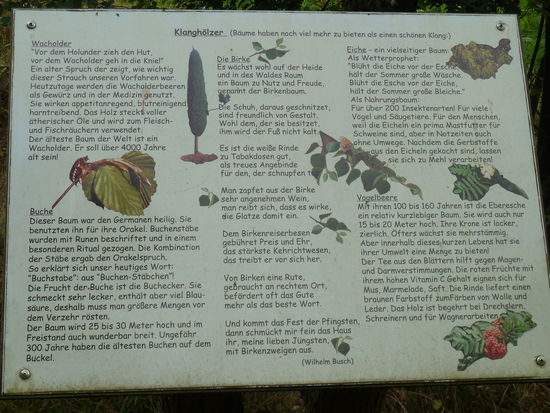 Genießen Sie das Rauschen dés Waldes oder die Stille abseits des Weges oder erfreuen Sie Ihre Sinne, in dem Sie die Hölzer anschlagen. Mehrere Personen können gleichzeitig spielen und durch Hinhören gemeinsam musizieren.
