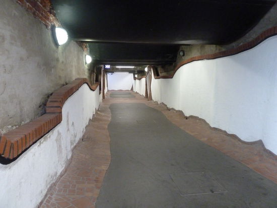 Auf der gegenüberliegenden Straßenseite fällt der Blick auf die Backsteinfassade der Heiligen-Geist-Kapelle (20). die einst zu einem Hospital gehörte. Erstmals erwähnt wurde der gotische Bau im Jahre 1321, im Jahre 1470 hat man den Chor angefügt. Im Inneren der Kapelle findet sich einer der größten Kunstschätze Uelzens in Gestalt farbenprächtiger Glasfenster, die um 1420 für die gotische Kapelle St. Viti gefertigt wurden und erst im 19. Jahrhundert in die Fenster der Heiligen-Geist-Kapelle eingefügt wurden. (Leider war die Kapelle zu unserer Besuchszeit geschlossen) Der eingetiefte Bereich entlang der Kapellenmauern erschließt das historische Bodenniveau der Stadt im 14. Jahrhundert.