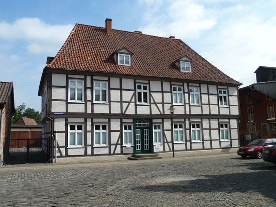 Wir beginnen an der Stadtmauer beim modernen Rathaus. Sie wurde im Klosterziegelformat von 1381 bis 1386 errichtet. Die ursprüngliche Länge betrug 1.345m, Höhe 4,20m. 9 große und 11 kleine Mauertürme und 4 Stadttore hat es einmal gegeben: Lüneburger Tor, Veerßer Tor, Gudestor und kleines Mühlentor. Von 1792 bis 1800 wurden diese Befestigungen bis auf geringe Mauerreste abgetragen. Von den drei Stadtgräben vor der Mauer blieb nur der äußere an der Ringstraße erhalten.