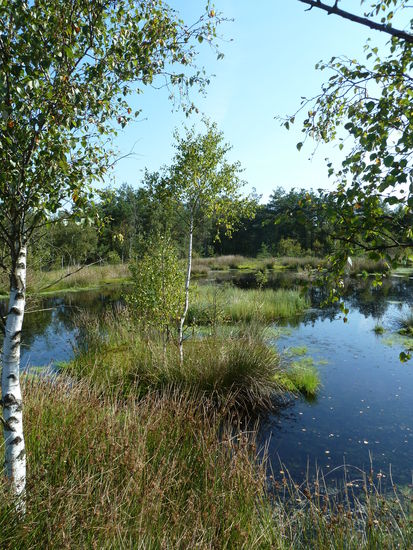 abgebaut werden, wächst das Moor über das Umgebungsniveau. Es wölbt sich mit der zeit hoch; deshalb der name Hochmoor.
