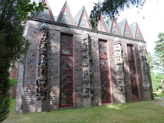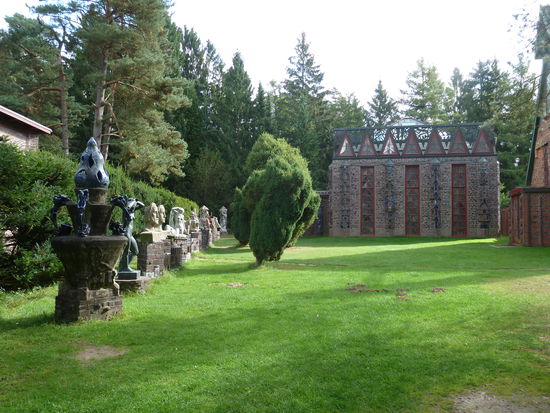 Ein Flyer machte uns aufmerksam auf die Kunststätte Bossard , die in der Abgeschiedenheit der Nordheide liegt. Im Laufe von 40 Jahren entstand ein Ensemble von Gebäuden mit Plastiken, Gemälden, Wohn- und Atelierräumen, das seinesgleichen sucht. Das Künstlerehepaar Bossard - beide inzwischen verstorben - schuf dieses Gesamtkunstwerk als ihren Traum von der Einheit von Leben und Kunst.