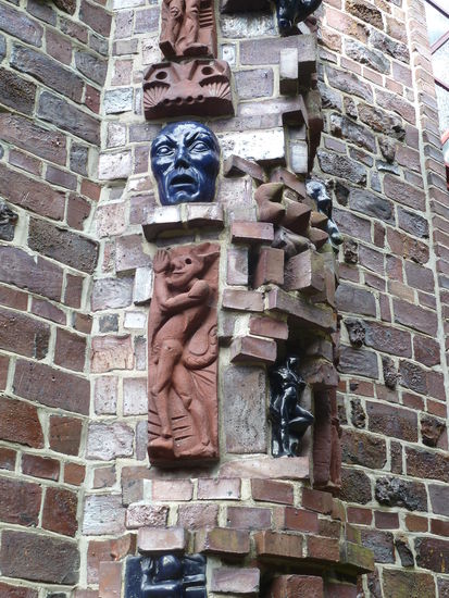'Kleinere' aber umso zahlreichere Plastiken finden sich an den Außenfassaden des Kunsttempels. Die beschriebene Symbolik zu erläutern würde der Rahmen dieser Präsentation sprengen.