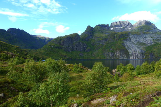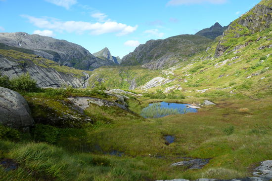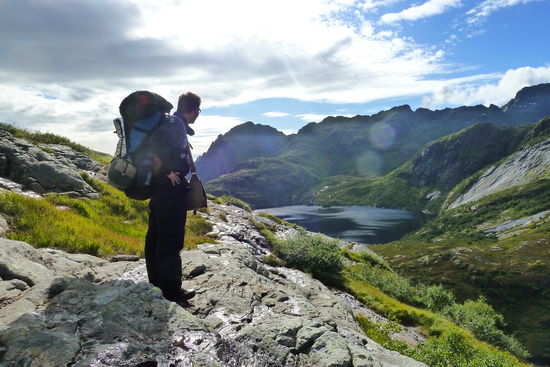 Bin um circa 10 Uhr aufgewacht. Erstmal schön Essen gemacht dann Sachen zusammengepackt und los ging es. Am Abend zuvor hatte ich mir eine Landkarte 1:50000 geholt, in der alle Wanderrouten zu finden waren, und mir direkt eine schöne Tour ausgesucht. War zwar extrem hart, da ich um die 24 Kg Gepäck mit mir trug und der Weg doch zum Teil sehr steile Passagen hatte. Aber da das Wetter so super war, habe ich viele Pausen eingelegt. Nach 9 stündigen Wanderns hatte ich endlich ein schönes Fleckchen Erde gefunden, das perfekt war um einige Tage dort auszuharren.