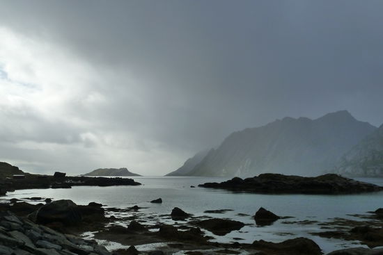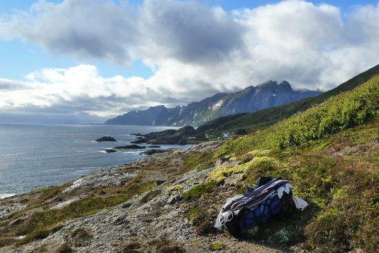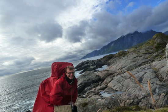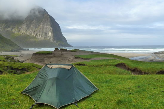 Wieder mal hat es die ganze Nacht geregnet, was auf den Lofoten nicht sonderlich verwunderlich ist. Da es nicht so kräftig geregnet hat, kam nichts durch mein Zelt und ich konnte im trockenen schlafen. Anscheinend nichts besonderes. Aber mittlerweile habe ich einen trockenen Schlafsack schätzen gelernt. Ehrlich. Beim trekken ist es das schönste was es gibt in einem trockenen warmen Schlafsack zu pennen!