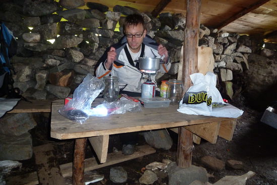Nach 2 Stunden Schlaf hieß es wieder: Raus aus dem Schlafsack rein in die nassen Sachen, einpacken, essen und weiter geht es!
