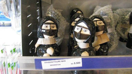 Gleichzeitig interessant und politisch brisant fanden wir die Wackeldackel-Püppchen in Flughafen-Shop, Frauen mit einer Burka.