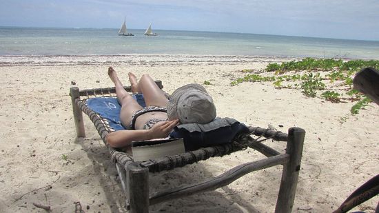 Den Tag verbrachten wir in einer Hollywoodschaukel am Strand mit dösen, lesen und ins Wasser gehen.