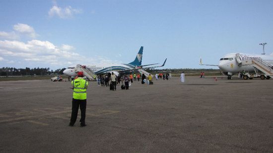 Wie an vielen anderen Flughäfen mussten wir beim Verlassen um unsere Koffer gegen mehrere Einheimische kämpfen, die uns unbedingt "selbstlos" beim Tragen helfen wollten. Es gelang uns nur knapp, aus der Horde unverletzt und mit Koffern zu entkommen...