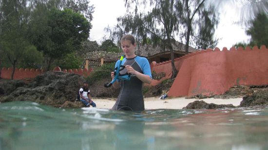 Bevor uns das Boot nach Stone Town zurück bringt, erfrischen wir uns im flachen Wasser um die Insel. Leider hat die Unterwasserwelt nahe des Ufers nur wenig Interessantes zu bieten. Weiter nach draußen trauten wir uns angesichts der vielen Transferboote nicht.