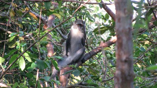 Uns wurden Rotrücken- und Schwarzrücken-Colobus-Affen gezeigt, zum Teil mit Babyäffchen im Arm.
