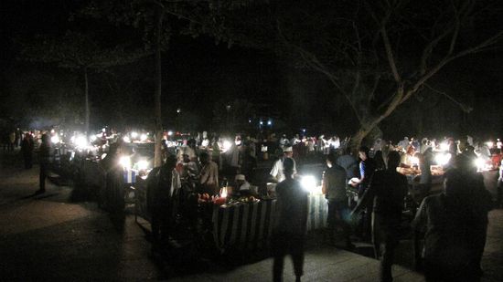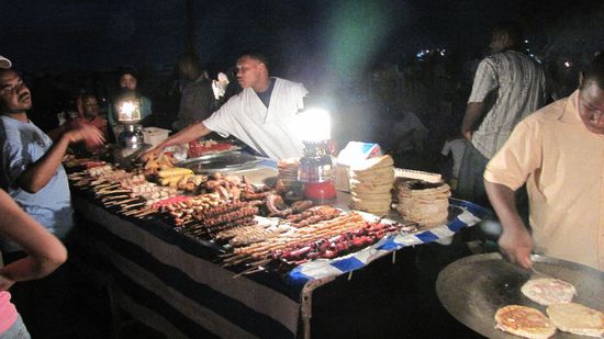 Den Abend verbringen wir auf den Forodhani Gardens, wo einige Dutzend Garküchen aufgestellt werden, die erstaunlicherweise immer wieder nur nur drei Gerichte anbieten: Sansibar-Pizza, Grillspießchen mit allerlei Fleisch-, Fisch- und Meeresfrüchten, sowie Zuckerrohrsaft. Und alles frisch auf Bestellung zubereitet.