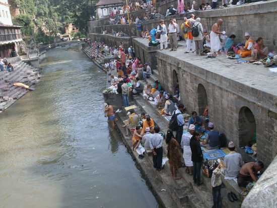 nach Bodhnath haben wir auch noch einen Ausflug nach Pashupathinath gemacht, wo (klingt jetzt etwas komisch) die Verstorbenen verbrannt werden. Aber es war schon ein sehr athmosphaerischer Ort. Fotos haben wir natuerlich dezent gemacht.