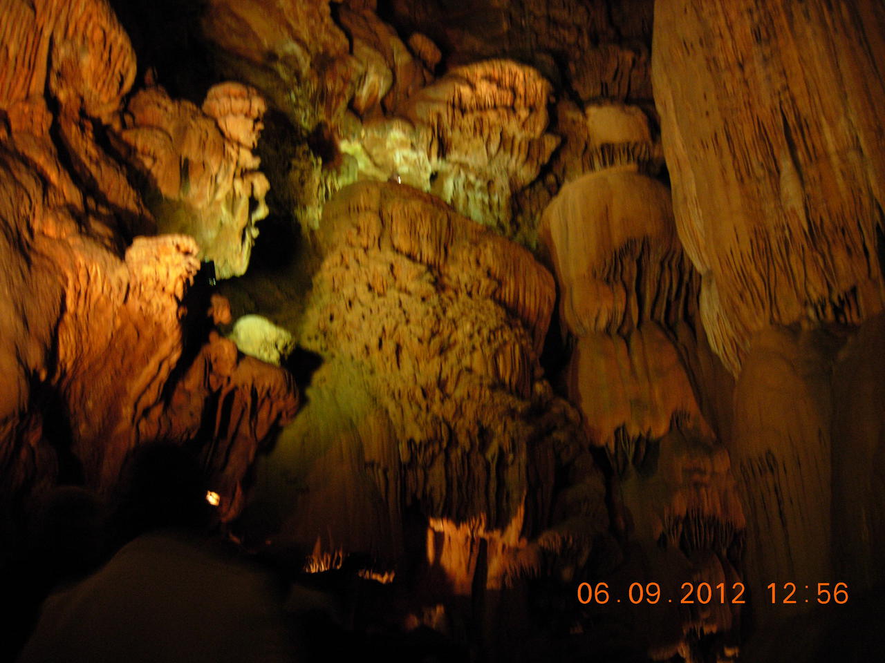 An der D 673 Liegt unter den Ziegenweiden ein Naturkunstwerk verborgen. Der Schlund von Padirac ist eine der meistbesichtigten Sehenswürdigkeiten von Frankreich. Von aussen ist ein rundliches Loch zu sehen (103 Meter tief). Eine lange Schlange steht vor dem Eingangsgebäude mit Kasse. Per Lift oder mit 455 Treppenstufen geht es hinunter in den Schlund. Nach einem kurzen Spaziergang in sehr hoher Schlucht und Gängen folgen weitere Treppen. Danach besteigt man einen Kahn und fährt den Fluss entlang, die Begleitung erklärt viele Detail zur Höhle und der Geschichte. Unter einer weiteren Begleitung läuft man steile Treppen rauf und runter mit schönen Sinterbecken und voller Stalaktiten, alles toll beleuchtet. Danach geht es mit dem Kahn langsam gleitend über das klare Wasser zurück. Für uns war das die interssanteste Höhle die wir bisher je besichtigt haben. Eintritt 9.40 Euro pro Erwachsene Person.