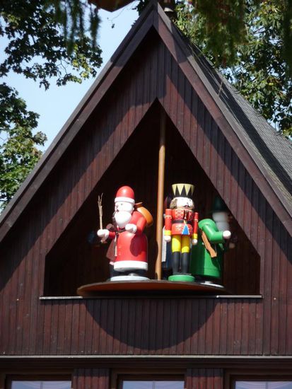 Von hier aus erreichten wir schließlich DAS Spielzeugdorf Seiffen - das Touristenmagnet schlechthin, wenngleich bei 35 Grad Außentemperatur die richtige Weihnachtsstimmung etwas zu wünschen übrig ließ. Zur Adventszeit steppt hier wahrscheinlich der Bär, doch an diesem Nachmittag ging es eher verschlafen und ruhig in Seiffen zu. Der Einkauf in den diversen Spielzeugläden kann sich als ganz schön kostspielig erweisen und ich entdeckte meinen zuvor im Olbernhauer Fabrikverkauf erstandenen Räucher-Nikolausi hier zu weitaus höheren Preisen.
