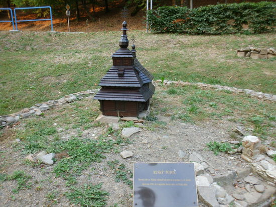 Als wir abends in Ulic zurück sind, entdecken wir in einem Park neben der Straßenverzweigung einen Garten, in dem alle Holzkirchen der Ostslowakei als Miniaturen aufgebaut sind. Sofort starte ich eine Fotosafari, bis meine Chipkarte voll ist.