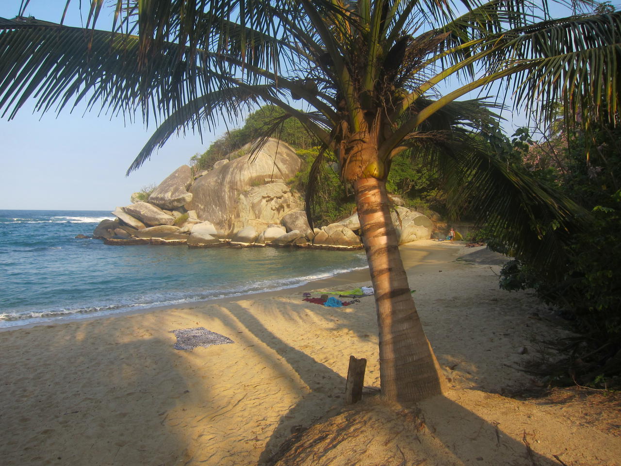 Der Tayrona Nationalpark ist der beliebteste Park in Kolumbien, vor allem Einheimische reisen hier in ihrer Urlaubszeit (Januar) gerne hin. Im Gegensatz zu den anderen Stränden, die wir an der Küste gesehen haben, sind die im Park wirklich traumhaft schön.