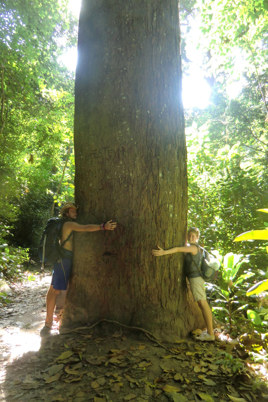 Und auch heute noch wohnen vereinzelt indigene Menschen im Regenwald. Diesen sind wir auf dem dreistündigen Rückweg begegnet und der Pfad führte auch an ihren Hütten vorbei. Wir haben auf der Wanderung sogar mehr Ureinwohner als Touristen gesehen.