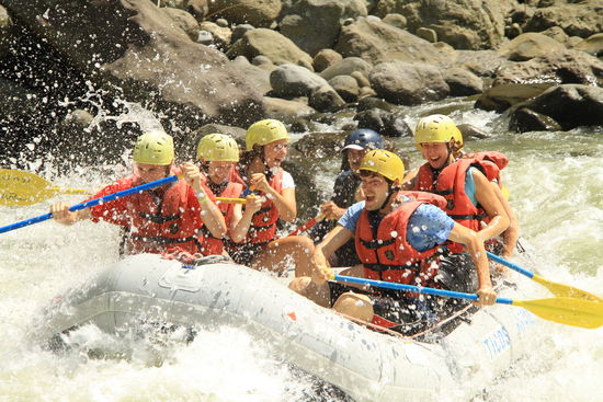 In der Umgebung von Turrialba fließen zwei Flüsse, die aufgrund der Stromschnellen für Rafting bestens geeignet sind. Unsere Tour führte 24km den Río Pacuare hinab, was 3-4 Stunden dauerte. Laut Reiseführer ermöglicht der Fluss die malerischsten Fahrten von ganz Zentralamerika, er fließt nämlich durch noch sehr unberührte Teile des Regenwaldes.