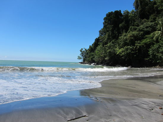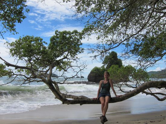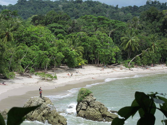 Montag hat der Nationalpark geschlossen, Dienstag hab ich morgens zu viel geskypt, Mittwoch hat es von morgens bis abends durchgeregnet, Donnerstag musste ich nach San José (und zusätzlich hat es von morgens bis abends durchgeregnet) und Freitag war es endlich soweit: Manuel Antonio Nationalpark!! Obwohl auch der Tag eher bewölkt anfing, hat es tatsächlich nicht geregnet und es war ein perfekter Tag. Habe Totenkopfaffen, Kapuzineraffen, Faultiere, verschiedene Echsen, Waschbären, Vögel, Insekten (aber zum Glück keine Spinne) und ein Tier namens Agouti (sieht aus wie ne Ratte ist aber so groß wie ein Hase) gesehen. Aber bevor die Tierbilder kommen, geniesst ein Stück Paradies: