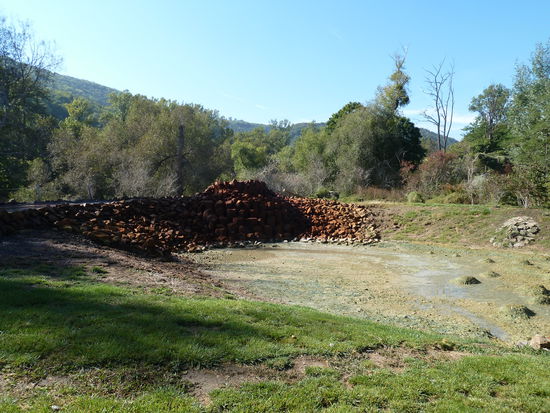Nach schöner - aber kurzer Fahrt - zum Genuß eines Kaffees o.a.m auf dem Schiff reicht die Zeit - läuft man eine kleine Strecke durch einen Auenwald des Namedyer Werth bis zu einem erstaunlich kleinen Areal, in dessen Mitte eine bräunlicher 'Steinhaufen' liegt.