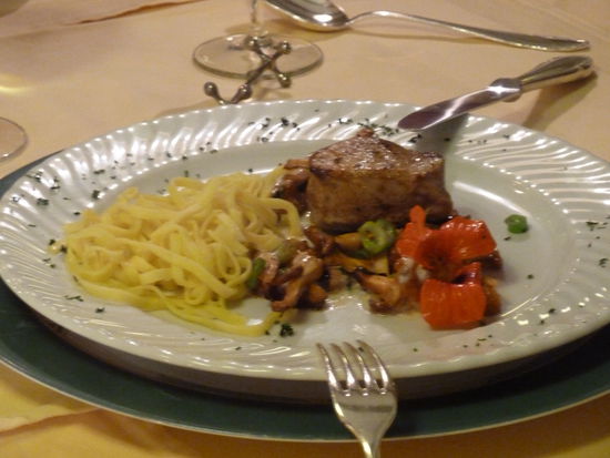 Wir stellen lediglich unser Gepäck ab und wollen direkt weiter in ein Lokal auf der anderen Mainseite, in dem wir vor zwei Jahren fantastisch gespeist haben. Wir betreten gegen 19.00 Uhr das Lokal, erhalten auch einen Tisch und als wir bestellen wollen, heißt es "das Menu gäbe es nur bis 19.00 Uhr". Die Bedienung fragt extra noch mal beim Chef, aber es bleibt dabei. Wir überlegen, ob wir gehen sollen, aber unser Hunger läßt uns bleiben. Nachdem man feststellt, daß wir nunmehr nur unseren Hunger mit einem kleinen Gericht stillen wollen, geht es auf einmal doch.