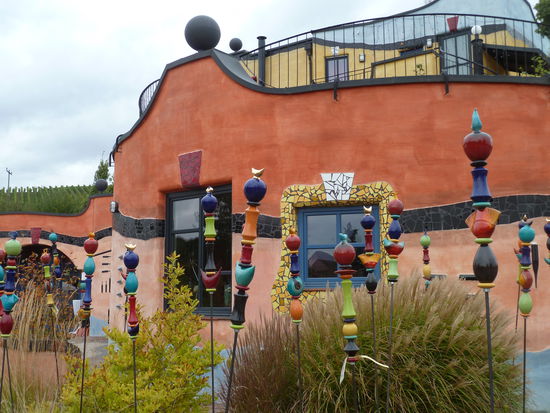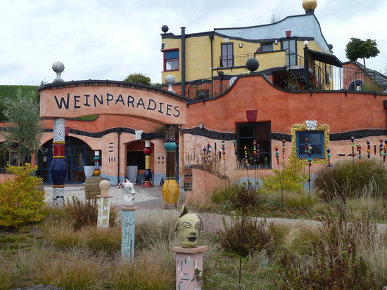 Der reine Zufall will es, dass ich in einem Katalog für Winzer ein Bild von einem Weingut sehe, das förmlich nach Hundertwasser 'reicht'. (s.o.) In Untereisenheim - den Ort hatte ich vorher noch nie gehört - befindet sich das 'Weinparadies' des Weingutes Hirn.